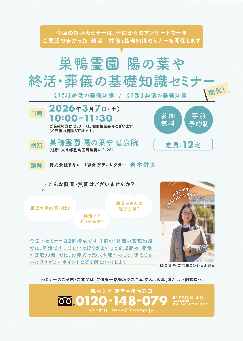このたび、陽の葉やにて、第三回目となる終活セミナーを開催いたします。