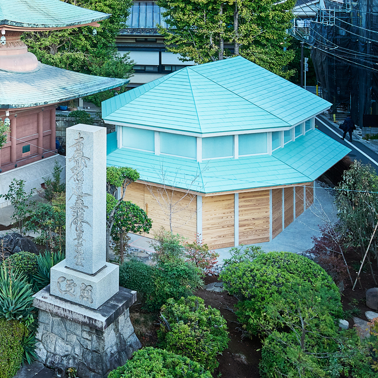 霊園のあたたかな雰囲気と調和し、やわらかな表情を浮かべる天然木の八角堂。扉を開き入り口の秘仏に合掌し一歩中へ進めば、荘厳な祈りのための聖域が広がっています。高窓から差し込む外光がさざ波のように辺りを照らす、静寂の空間。揺らめく光の中で、大切な人と向き合い、自らを見つめる。かけがえのない時間をお過ごしいただけます。